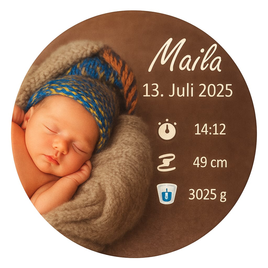 Deine Keramiktafel gibt es nicht nur in rechteckiger Form – sondern auch rund. So kannst du selbst entscheiden, welche Form deine Erinnerung am schönsten zur Geltung bringt.
