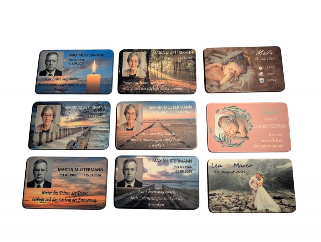 Wir unterstützen dich gerne bei der Auswahl deines Fotos und Hintergrunds, damit deine Tafel die richtige Wirkung entfaltet und deine Geschichte perfekt zur Geltung kommt.